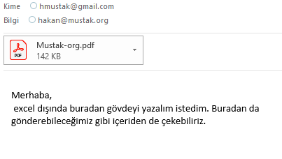" excel dışında buradan gövdeyi yazalım istedim." & _